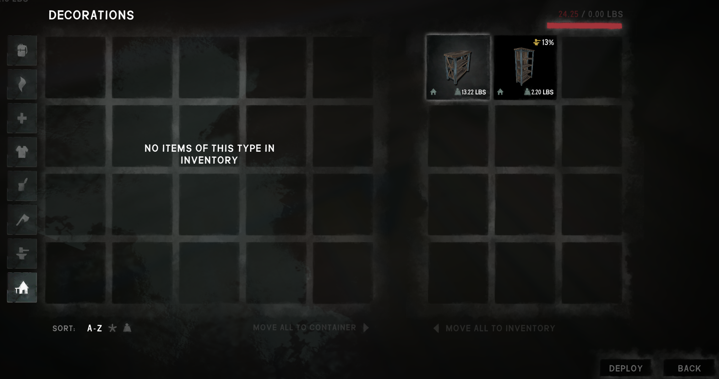 Some crafted items are too large to fit in your backpack inventory and are stored in the Furniture Work Bench Container instead.