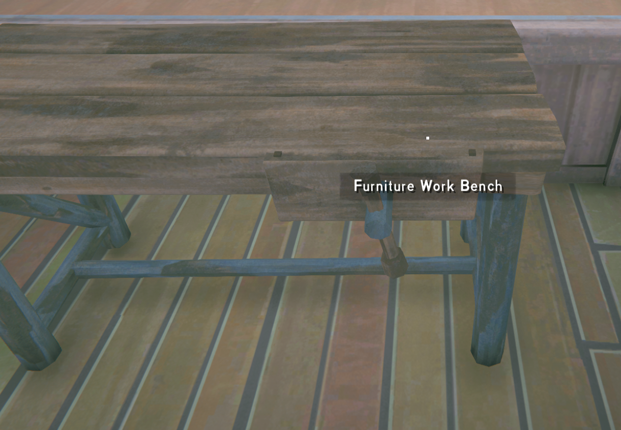 - Approach and interact with the Furniture Work Bench. By default, this opens the Crafting Menu